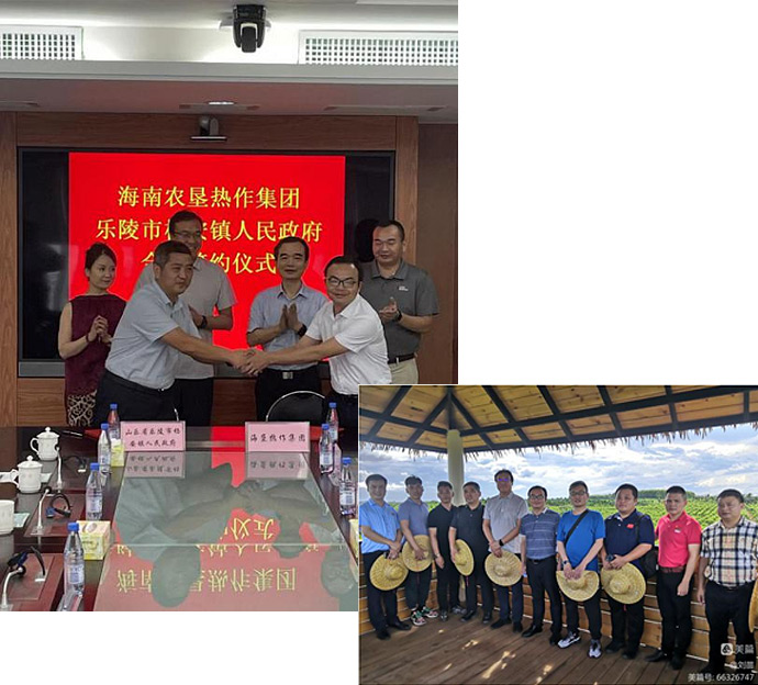 7月8日,海墾熱作集團與山東省樂陵市楊安鎮人民政府在海墾控股集團會議室簽訂合作協議,達成了雙方在三年內原料收購達到20億元的意向,雙方就鄉村振興、農業提質增效、貿易往來、集中倉儲、優化物流、投資合作、產業發展等事宜進行廣泛交流,海墾控股集團黨委委員、副總經理王曉橋出席簽約儀式并見證簽約全程。