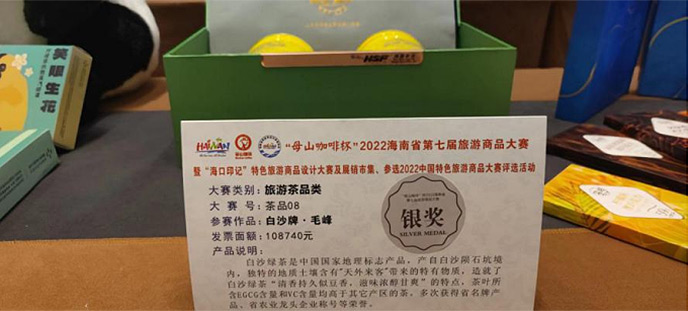11月1日白沙毛峰獲得“母山咖啡杯”2022海南省第七屆旅游商品大賽銀獎