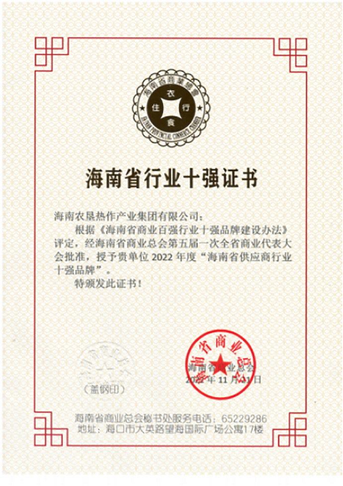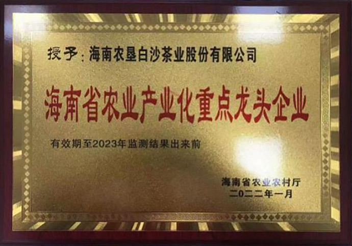 2022年1月榮獲海南省農業農村廳“海南省農業產業化重點龍頭企業”