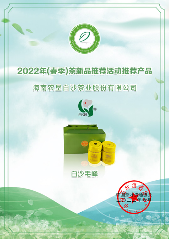 2022年6月榮獲中國茶葉流通協會2022年(春季)茶新品推薦活動推薦產品