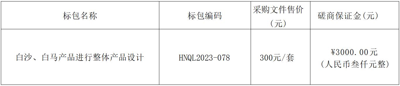 白沙、白馬產品進行整體產品設計采購項目的潛在供應商應在海口市海墾路綠海大廈7樓702室獲取 取采購文件,并于2023年9月4日11點30分(北京時間)前提交響應文件。