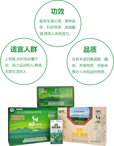 - 白沙綠茶產自白沙盆地,盆地氣候宜人,雨量充沛,土地肥沃,常年晨霧繚繞,是高山云霧茶生長的最佳環境。據當地人說,真正的白沙綠茶必須是出自白沙隕石坑及其周圍方可稱其為白沙綠茶。白沙綠茶湯色黃綠明亮,氣味清香持久,滋味濃厚甘醇。具有生津止渴清熱降火,提高人體免疫力等功效。...